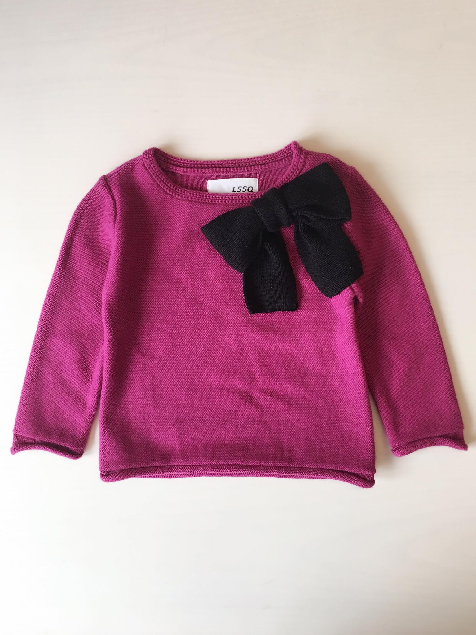 Pink sweater with big black ribbon